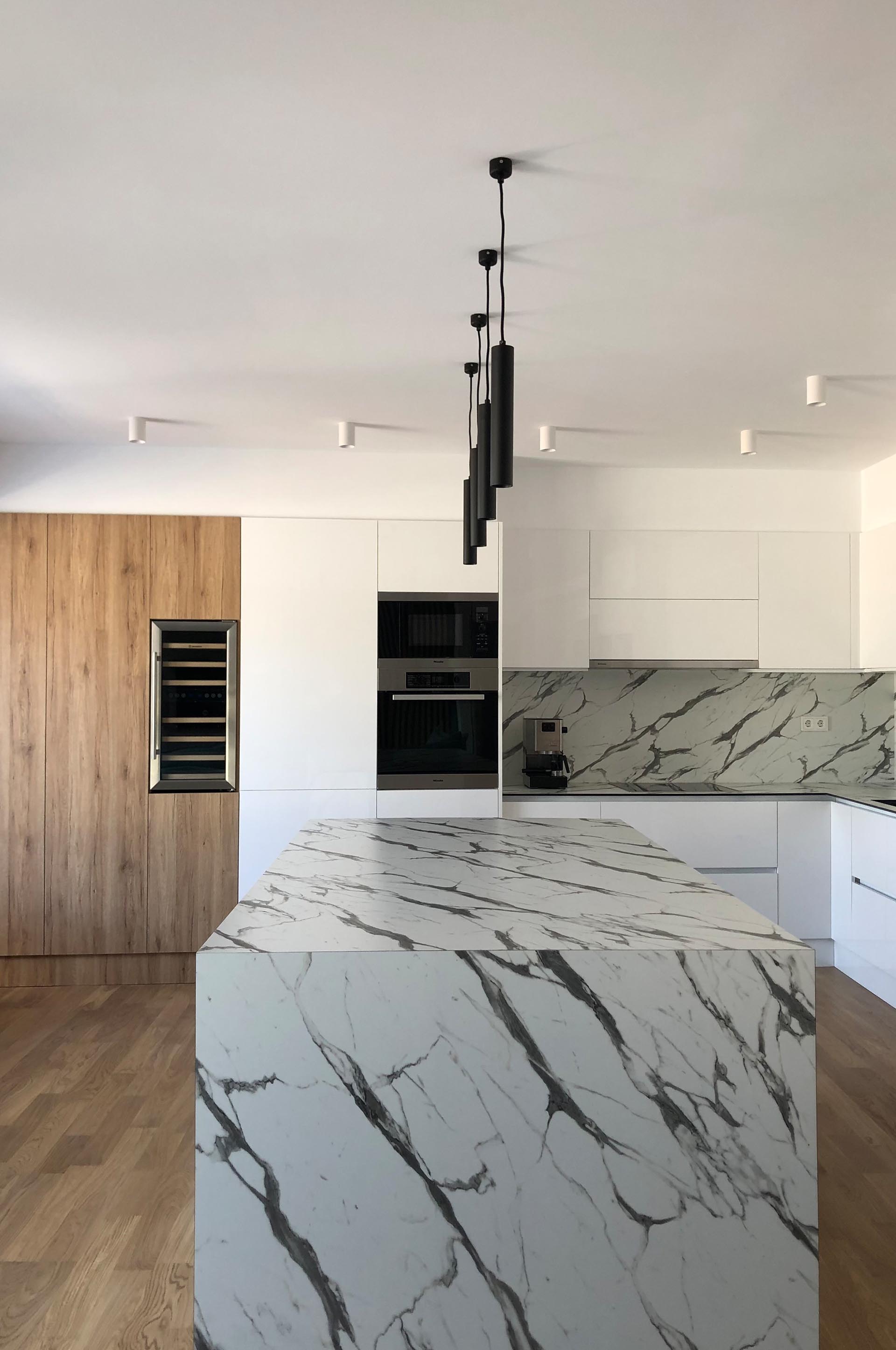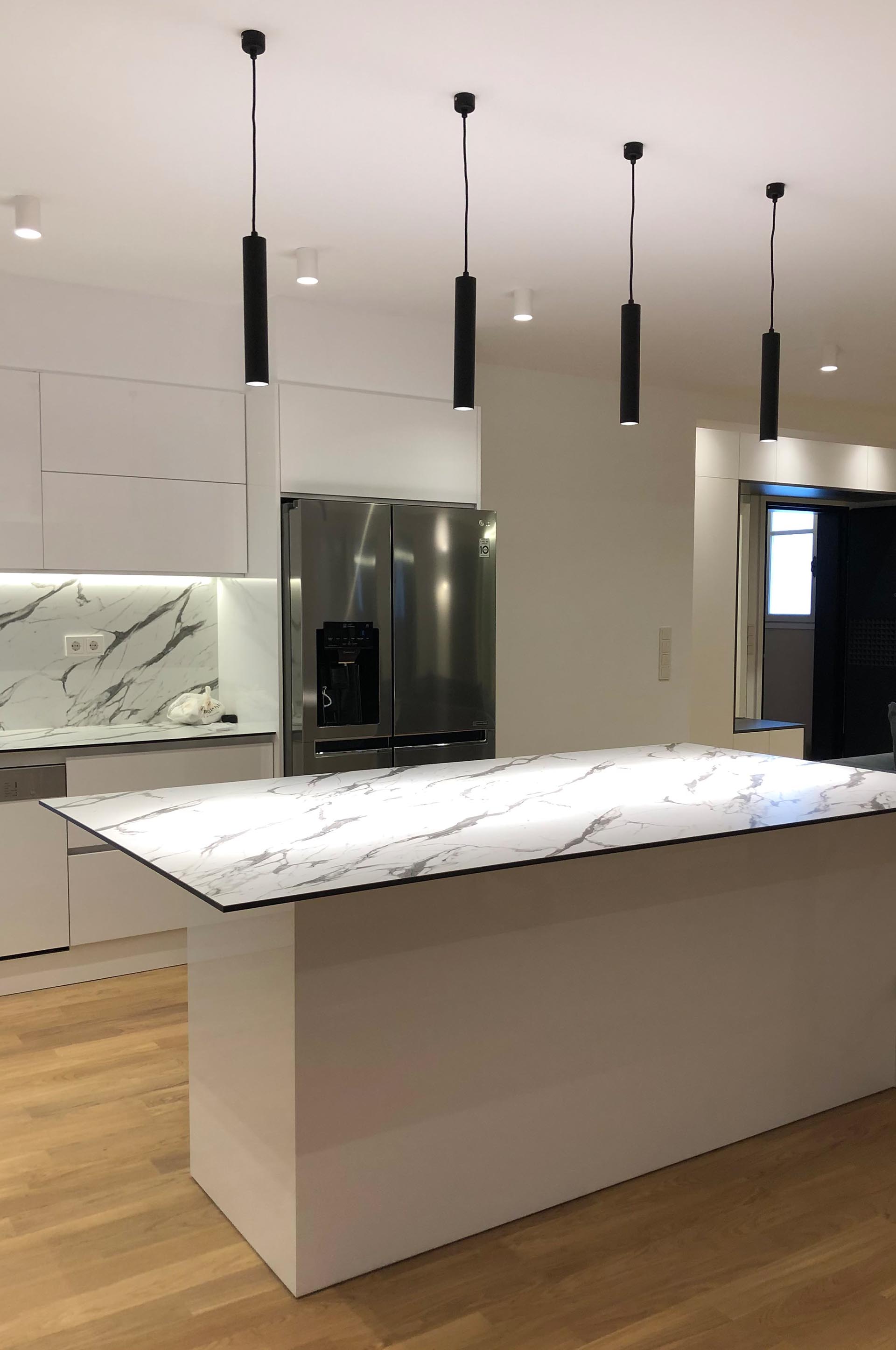 Οι εργασίες που πραγματοποιήθηκαν αφορούσαν την μελέτη- εκπόνηση 3D μελέτης, την ολική ανακατασκευή των υποδομών του αρχικού διαμερίσματος σε υδραυλικά και ηλεκτρομηχανολογικά καθώς και την εξ ολοκλήρου ενεργειακή αναβάθμιση του. Όσον αφορά τον σχεδιασμό καθώς και την επιλογή των υλικών, του φωτισμού αλλά και της επίπλωσης ακολουθήθηκαν minimal γραμμές με ειδικές κατασκευές που προσδίδουν μια αίσθηση άνεσης αλλά και πολυτέλειας συνάμα.