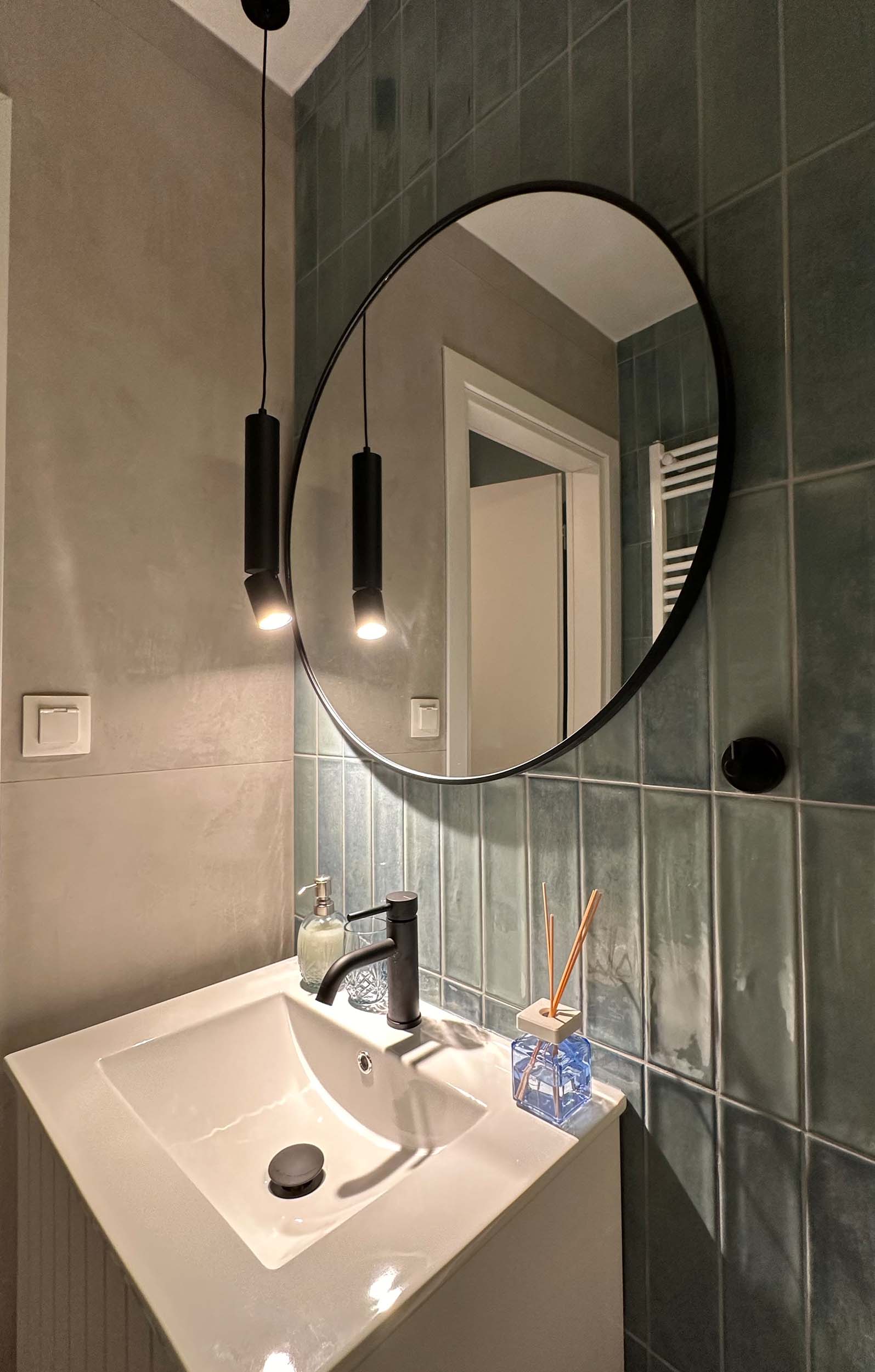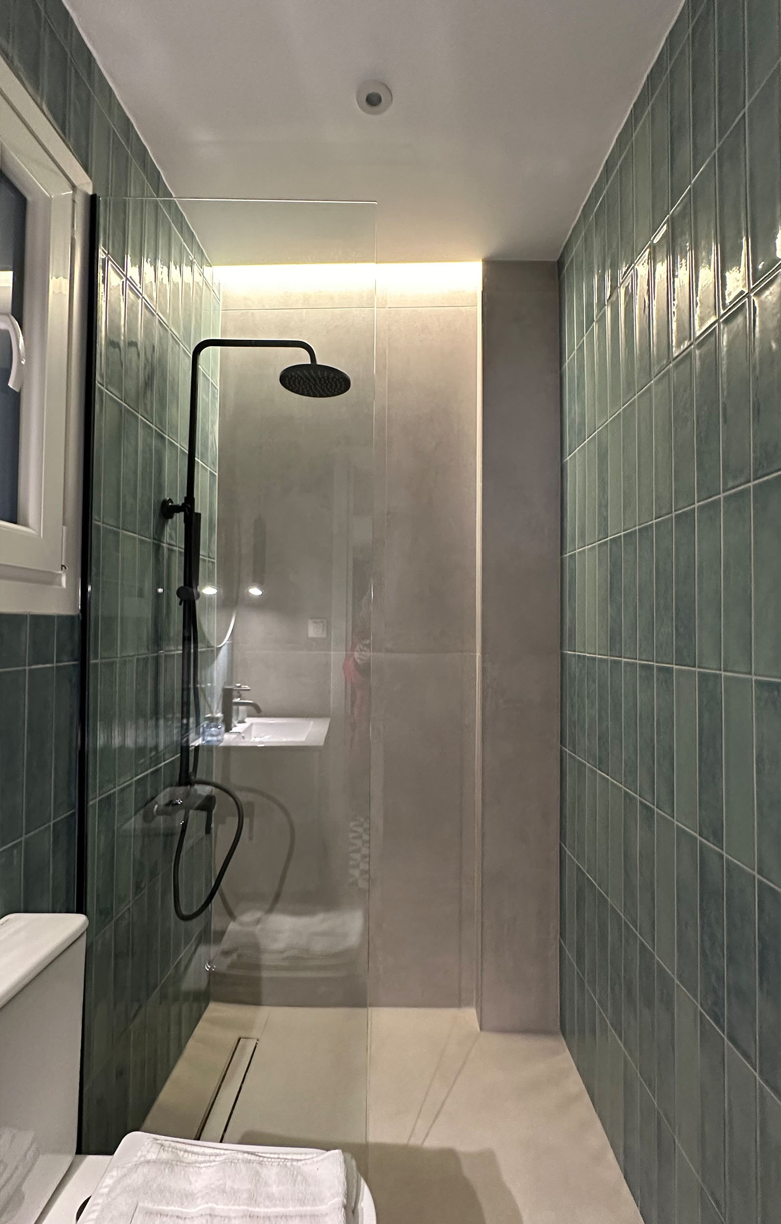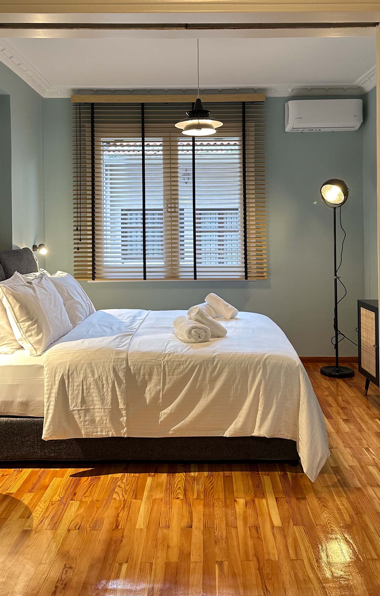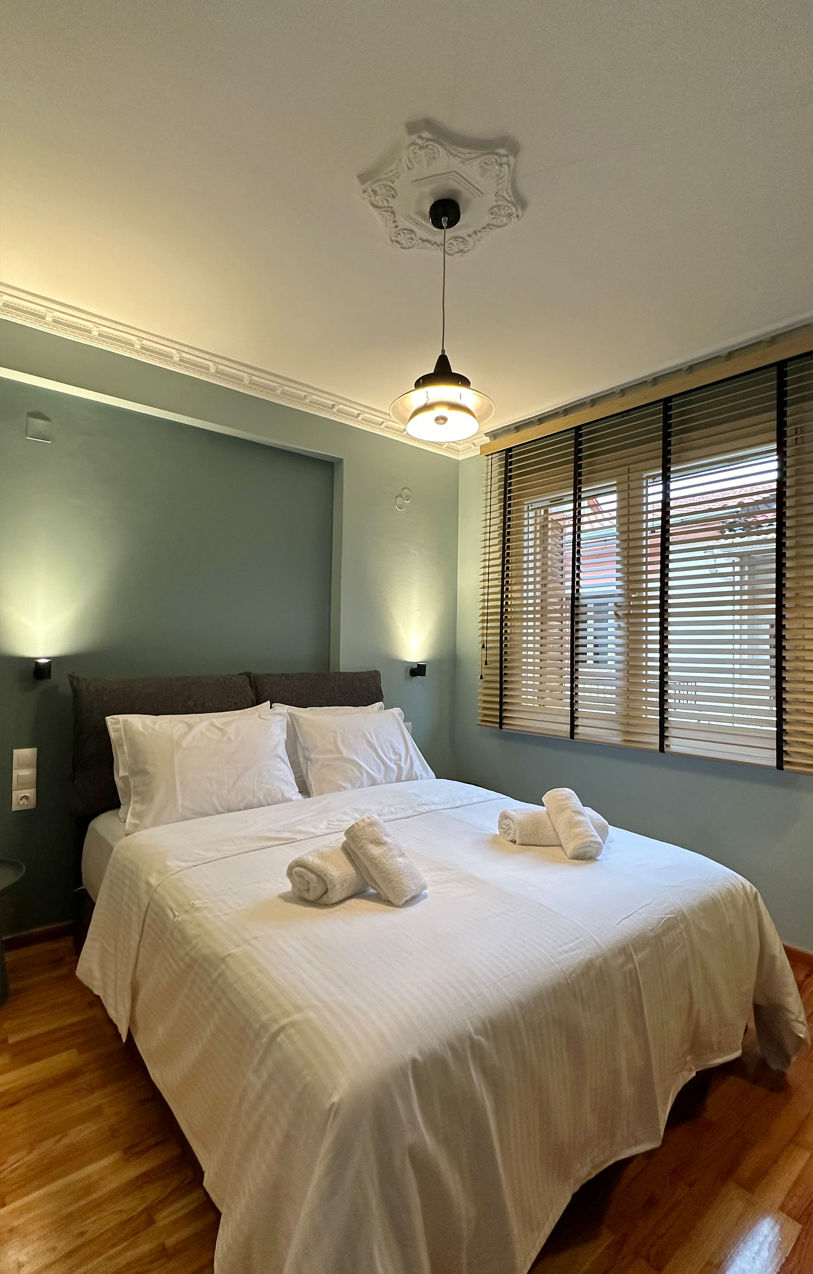 Στα σημεία που δεν μπορέσαμε να συντηρήσουμε τα αρχικά δάπεδα (μάρμαρο-ξύλο) προχωρήσαμε στην αντικατάστασή τους από πλακίδια σε όψη μωσαϊκού προσδίδοντάς τους έτσι μια διαχρονική όψη. Διακοσμητικές αλλά και λειτουργικές λεπτομέρειες, φωτισμός στα καίρια σημεία, επιλογές ζεστών υφασμάτων και επίπλων, ολοκλήρωσαν το αποτέλεσμα του σχεδιασμού.