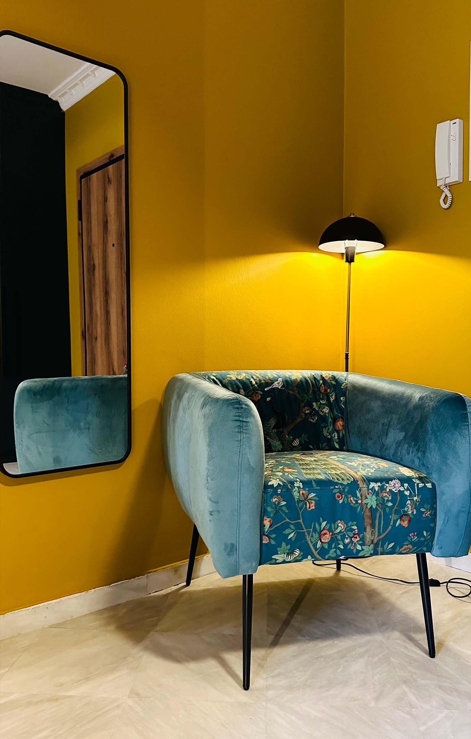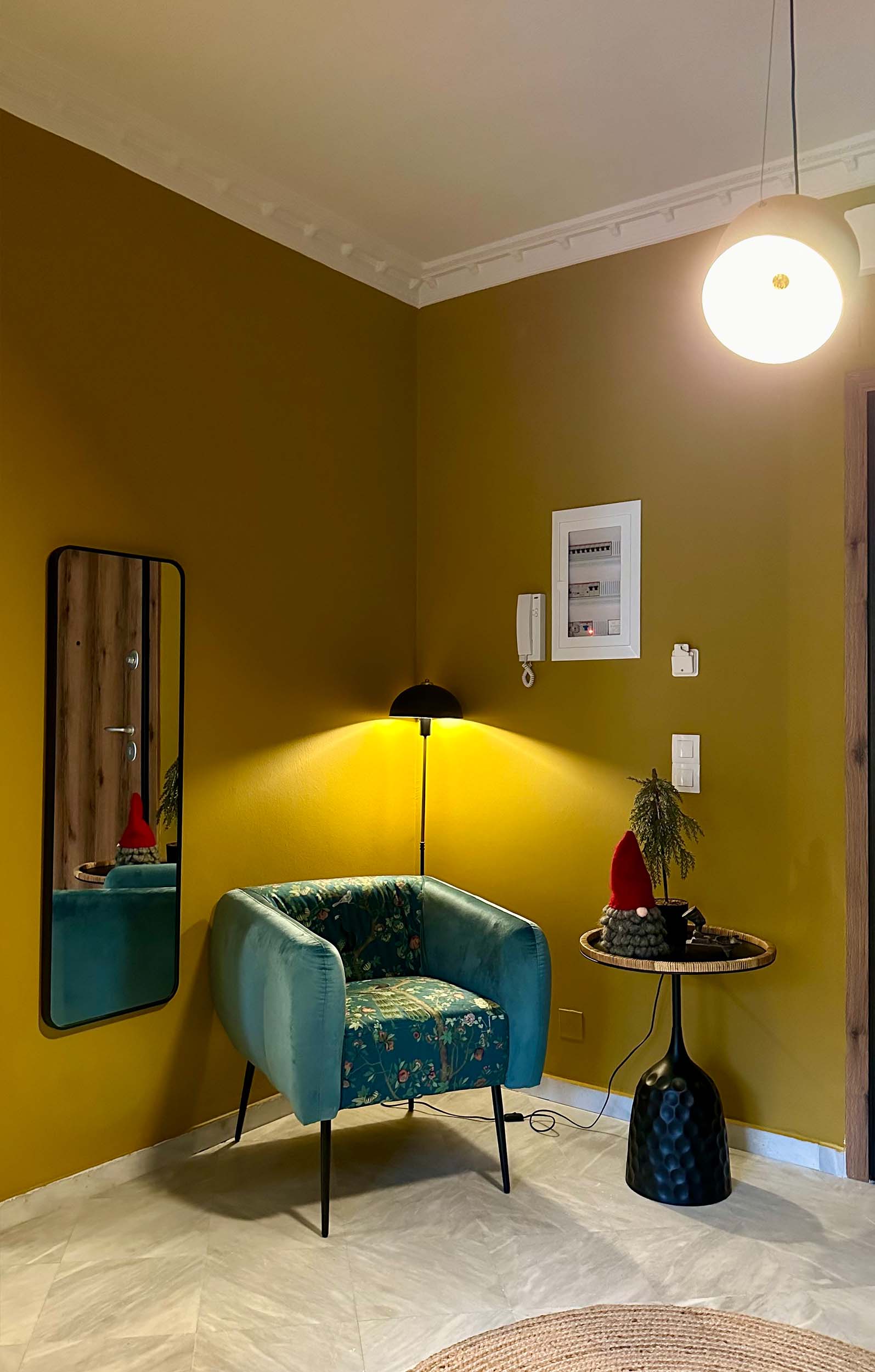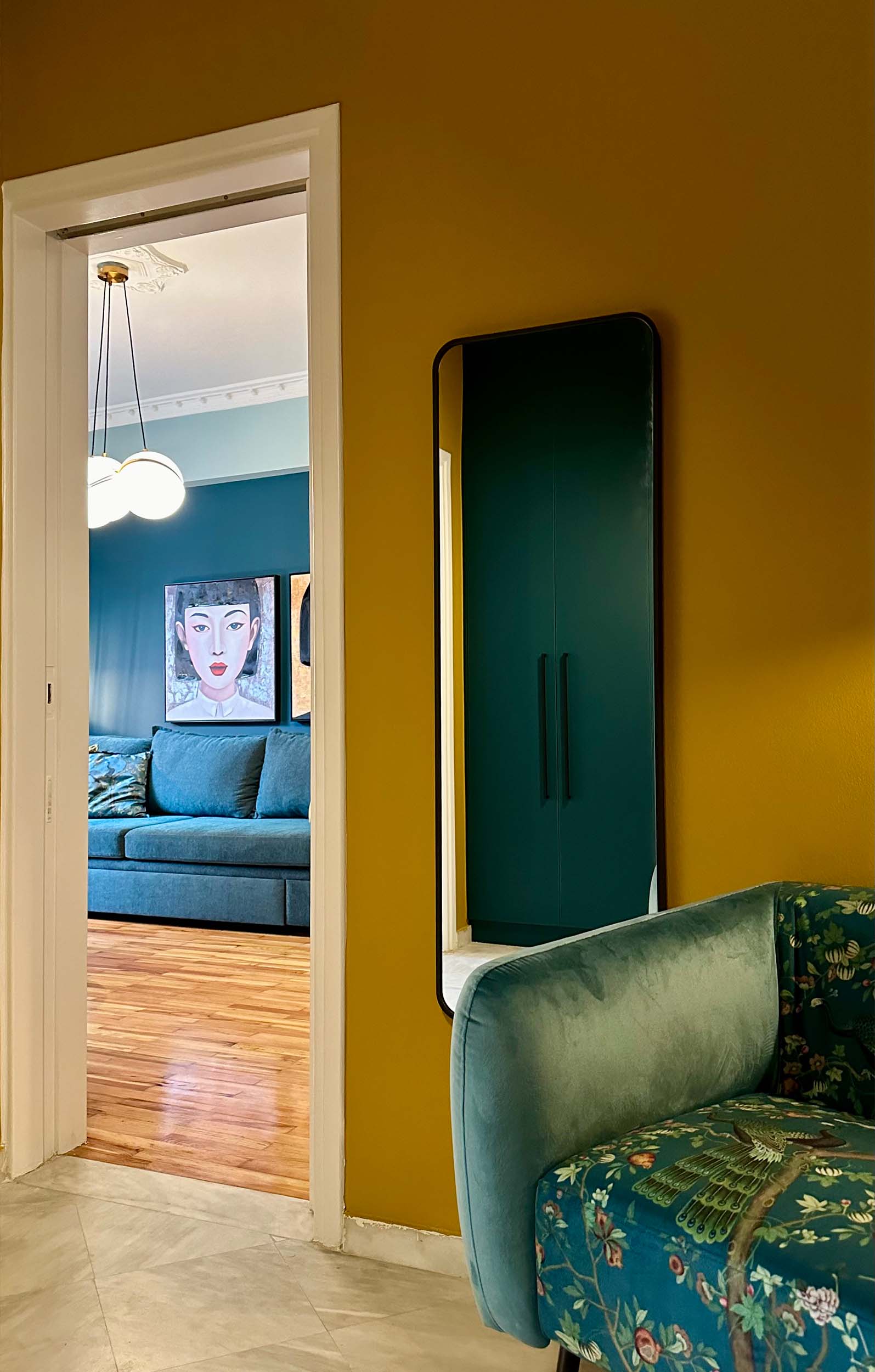 Το έργο αφορά στην μετατροπή ενός διαμερίσματος στο ιστορικό κέντρο των Ιωαννίνων σε airbnb κατάλυμα. Ο πεζόδρομος Σούτσου είναι σήμερα ένα από τα πιο πολύχρωμα σημεία της πόλης διαμορφώνοντας μια άλλη «πρόταση» για το παραδοσιακό αστικό τοπίο των Ιωαννίνων. Στα πλαίσια αυτής της παραδοχής και προσπαθώντας διατηρήσουμε άθικτα στοιχεία του αρχικού διαμερίσματος κατασκευής του 1965 (ξύλινα δάπεδα-μάρμαρο- γύψινα διακοσμητικά στοιχεία) προχωρήσαμε στην ανακαίνιση του χρησιμοποιώντας μια παλέτα χρωμάτων όπως το μπλε, το κίτρινο, το λευκό και το μαύρο.