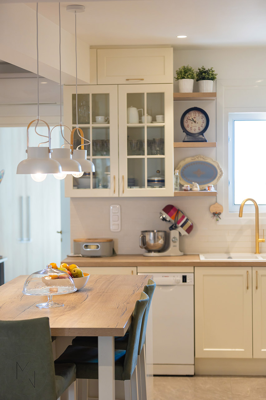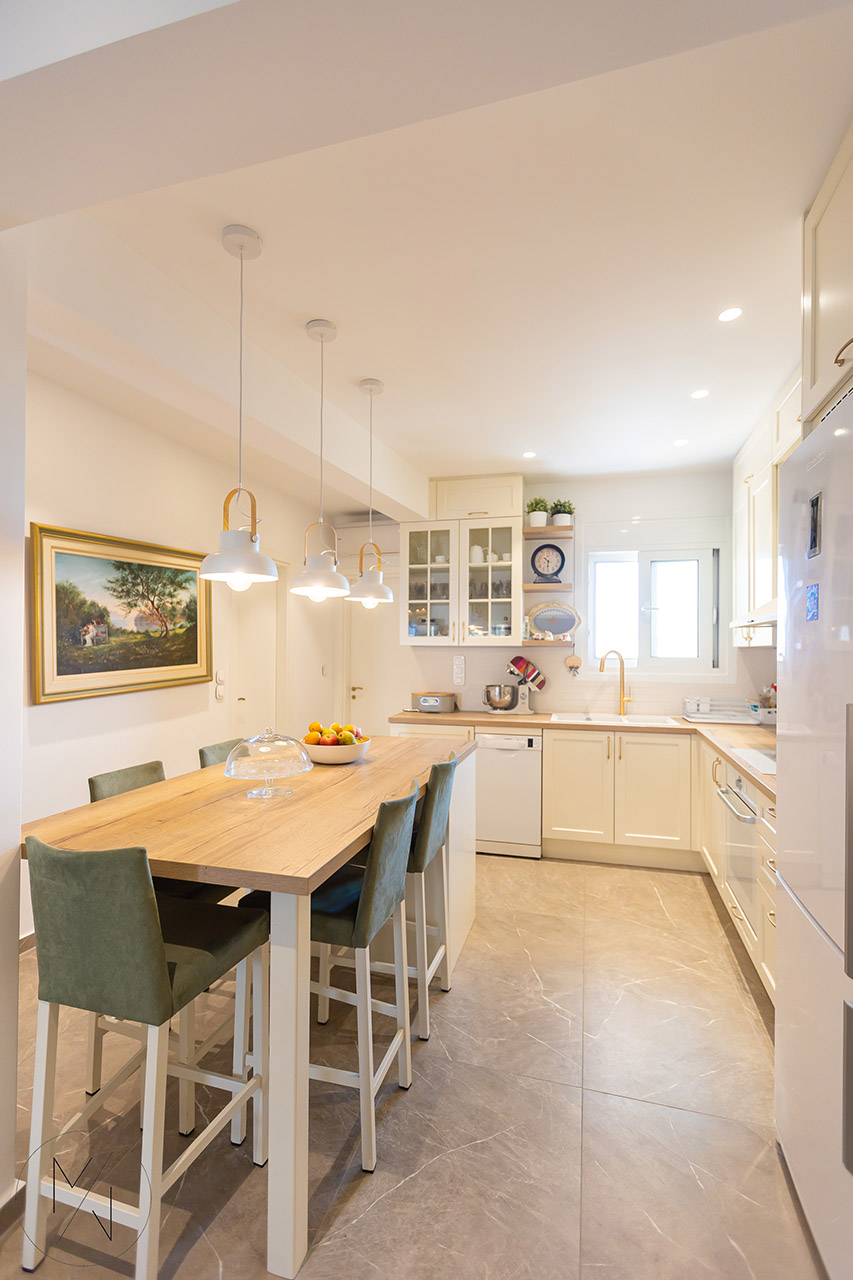 Το έργο αφορά σε μελέτη-σχεδιασμό interior design παλαιού διαμερίσματος πολυκατοικίας 2ου ορόφου επιφάνειας 90τμ. Επιθυμία των ιδιοκτητών ήταν η επικράτηση του κλασικού στοιχείου σε συνδυασμό με αποχρώσεις του λευκού με λεπτομέρειες σε ξύλο και χρυσό.